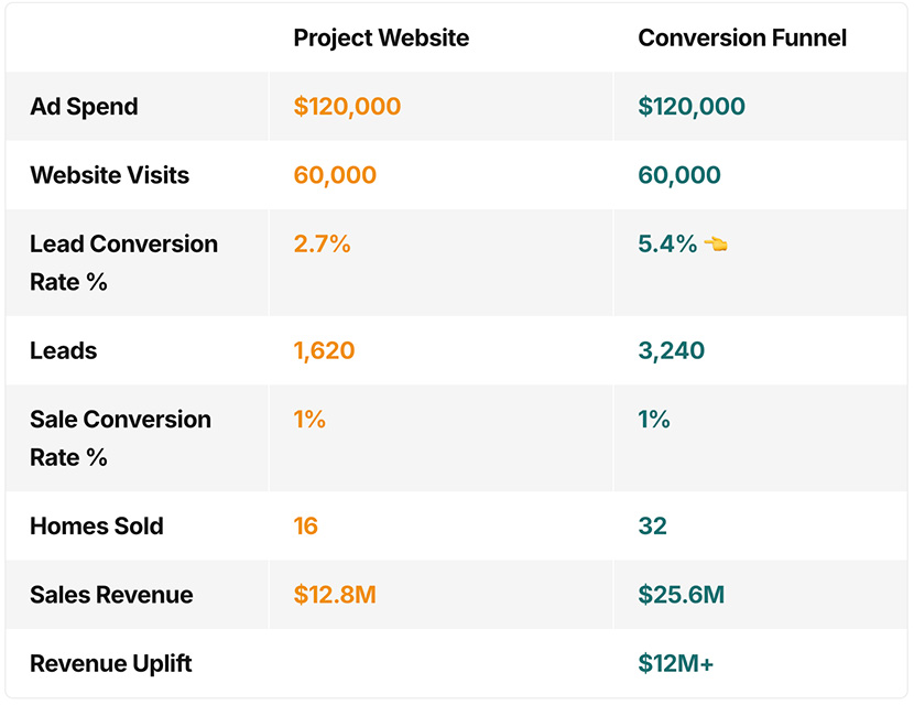 By combining low-cost digital ads with a direct-response style Project Conversion Funnel, we’re able to: